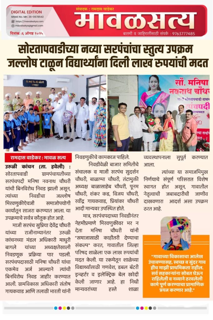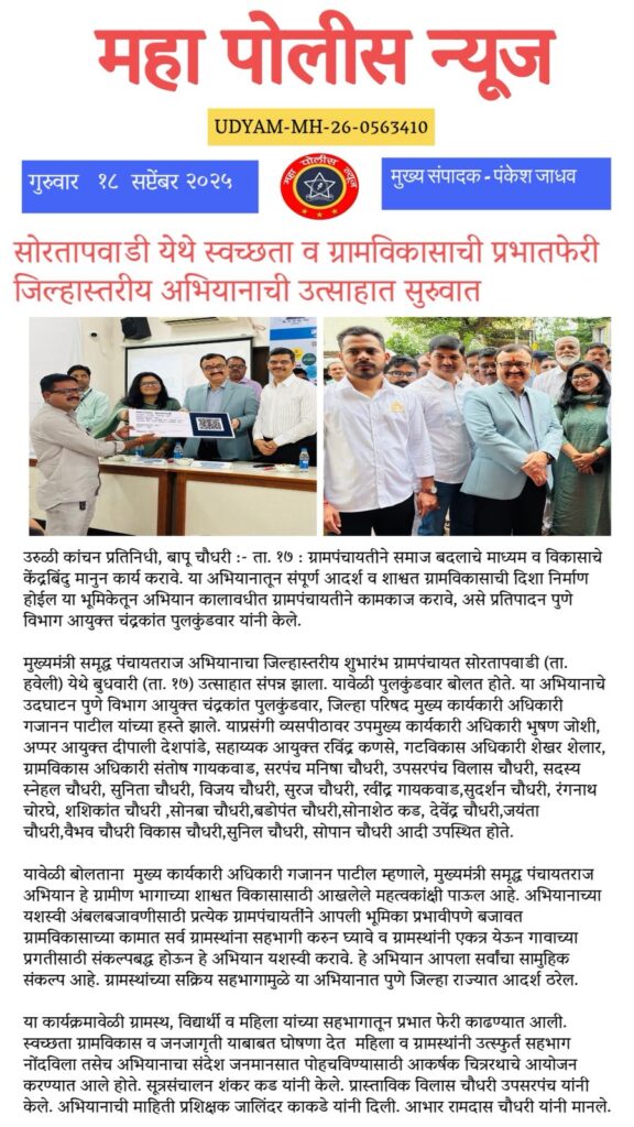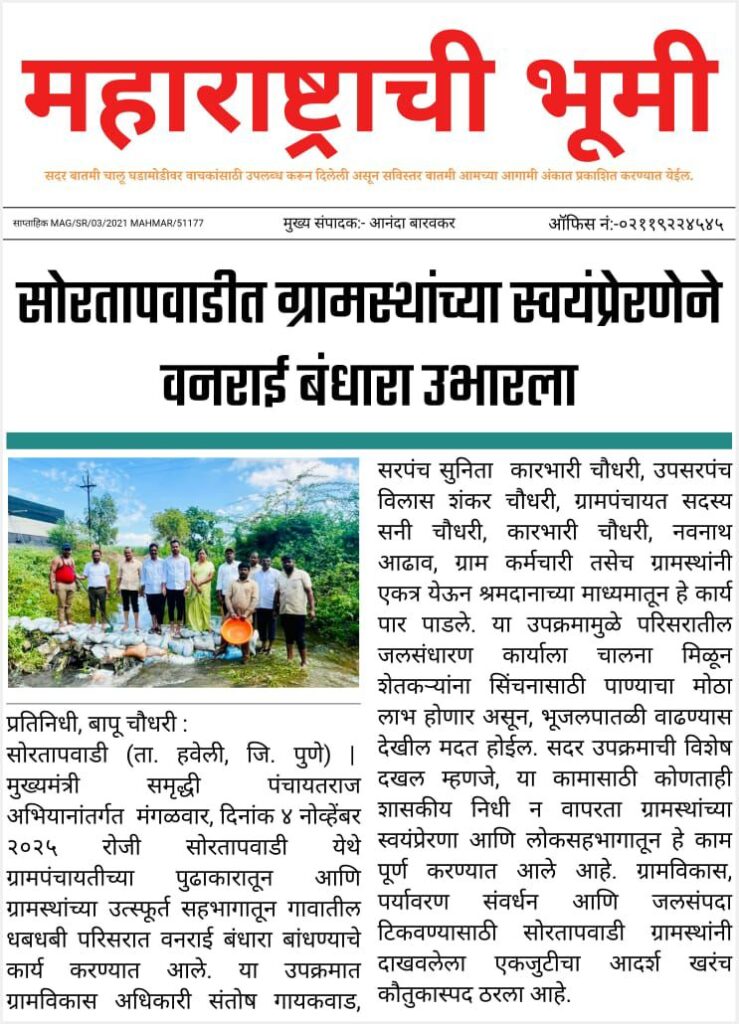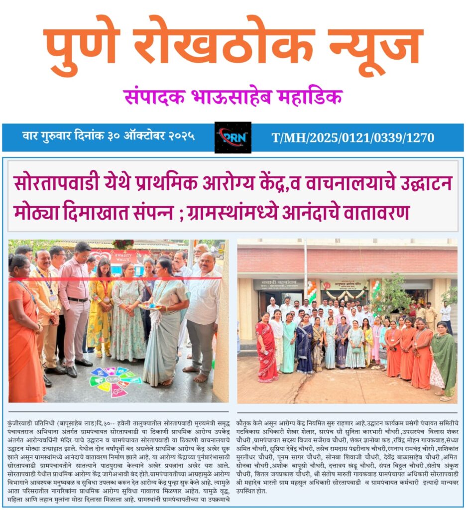 ग्रामपंचायत सोरतापवाडी "शब्दांपेक्षा काम जास्त बोलते " यावर विश्वास ठेवते. या गॅलरीद्वारे, आम्ही आमच्या गावाच्या विकासाचा प्रवास अभिमानाने सादर करतो - स्वच्छता मोहीम आणि रस्ते बांधकामापासून ते सार्वजनिक कल्याणकारी उपक्रमांपर्यंत.